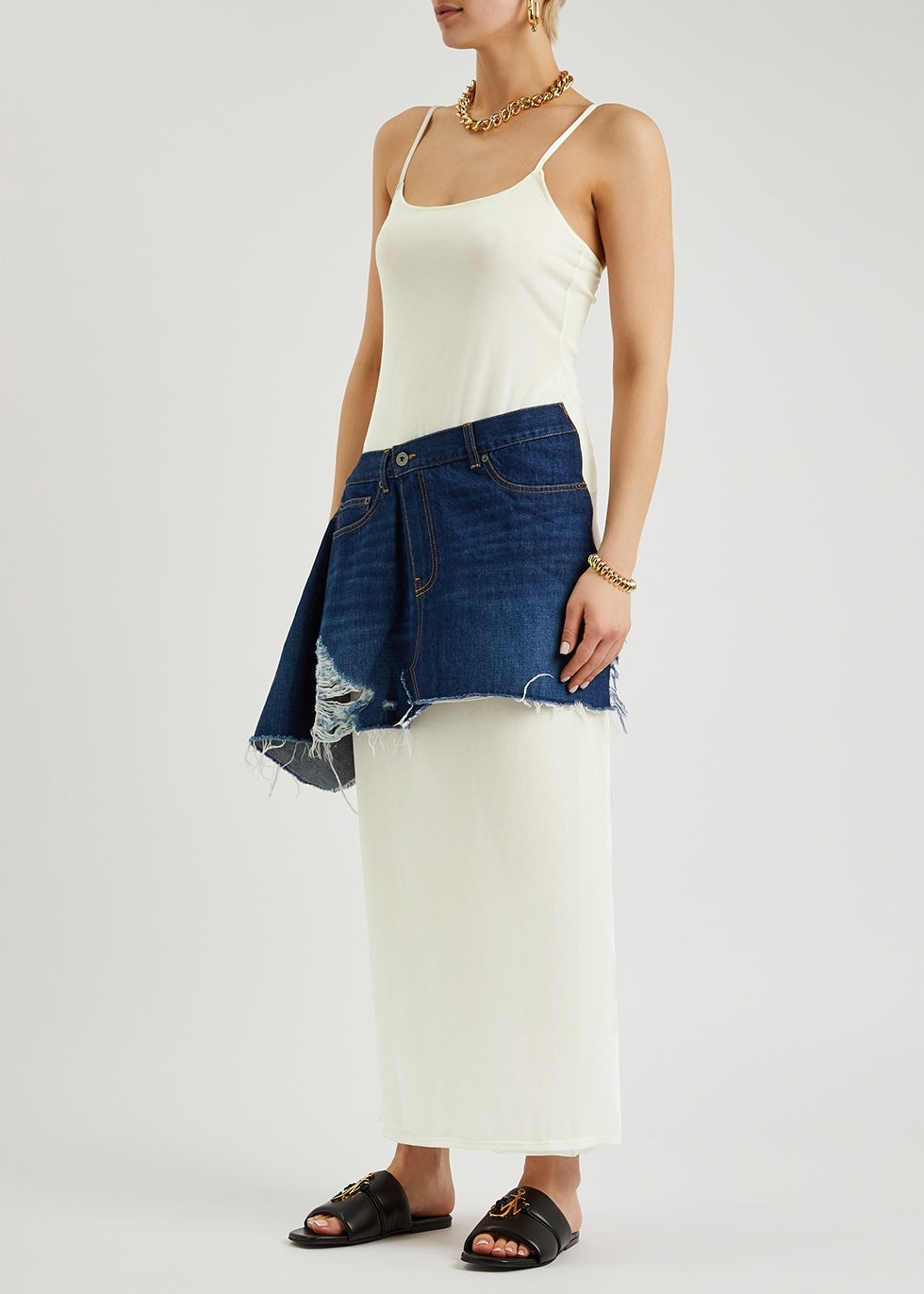 JW Anderson white cotton dress with asymmetric denim skirt attached
